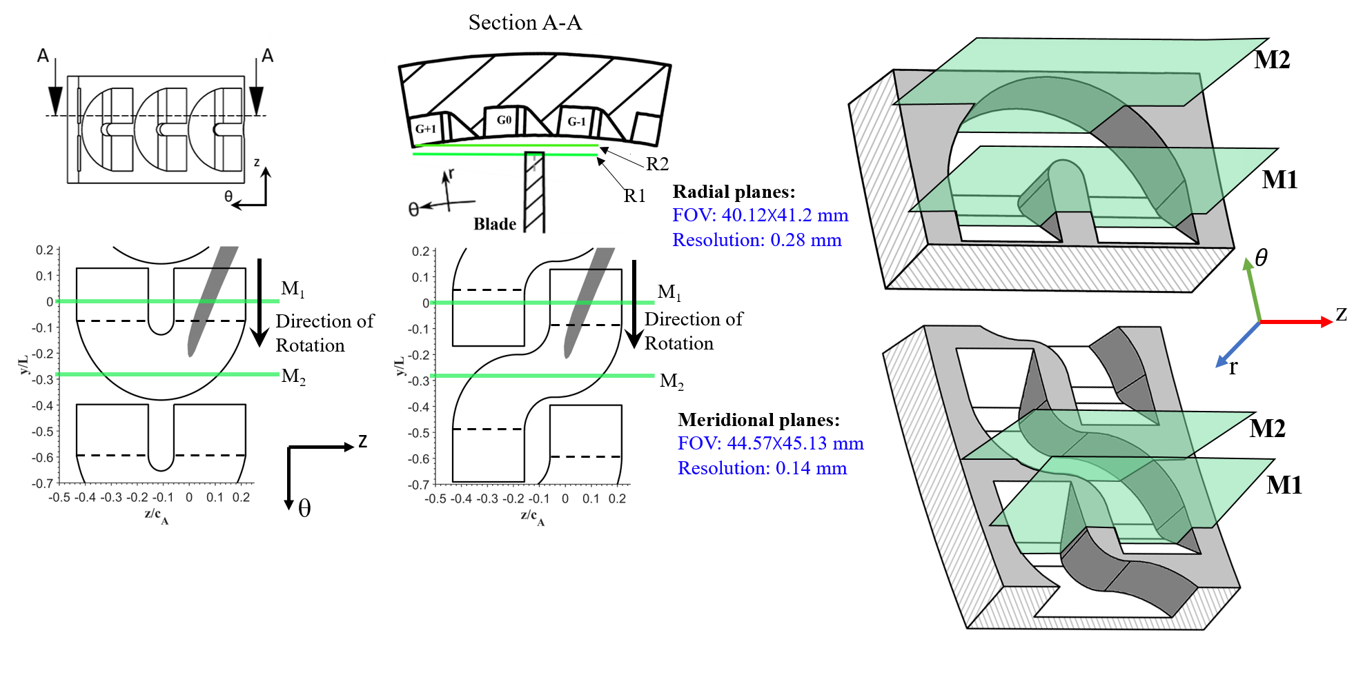 • The inlet to each groove was the same. The outlet was directed along/against the IGVwake/rotor motion.