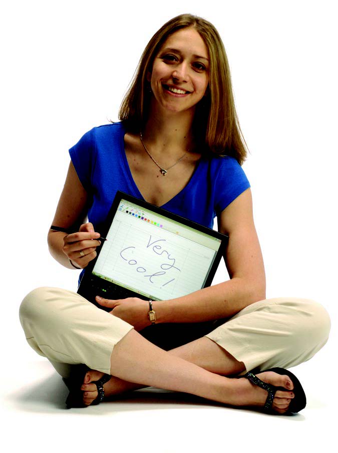 Erin Fitzgerald, a graduate student in the Department of Electrical and Computer Engineering and the founder and chair of Women of Whiting, a graduate student organization to support female students, says she values her tablet PC. The small laptop permits her to operate the computer with a digital pen or a fingertip instead of a keypad and a mouse. “A tablet PC is physically easily manipulated, the screen spins around; I can download papers and PDFs and write on those and store on the soft copy instead of having piles of papers around,” she says. Fitzgerald first started using a tablet PC when her faculty advisor, Frederick Jelinek, the director of the Center for Language and Speech Processing, sent her to work in Prague for a semester. “We thought that if we could write directly on the screen, it would help us work remotely,” she says. “We had Web cameras set up. I could directly draw on the tablet so as we spoke he would have the image appear on his screen.”