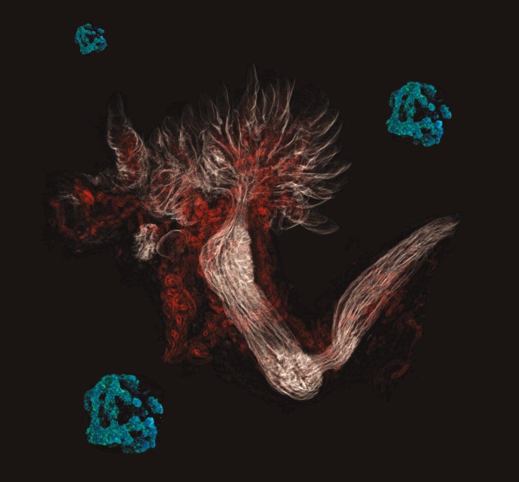 Image of a human fallopian tube alongside organoids developed by Denis Wirtz’s research group. These 3D maps aid in culturing biomaterials in vitro that replicate the complexity of real organs and potentially can contribute to advances in 3D bioprinting.